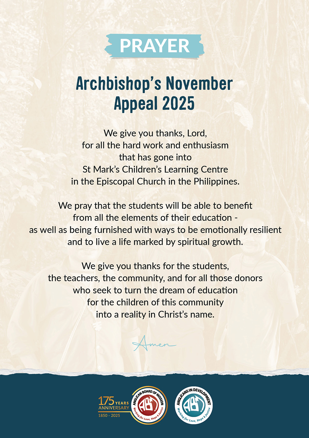 Thank you for your generous support of this appeal. Together, we can ensure that generations of Filipino children are educated at St Mark’s Children’s Learning Centre.